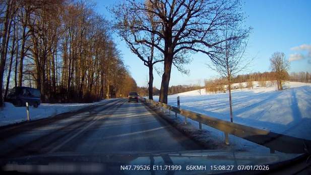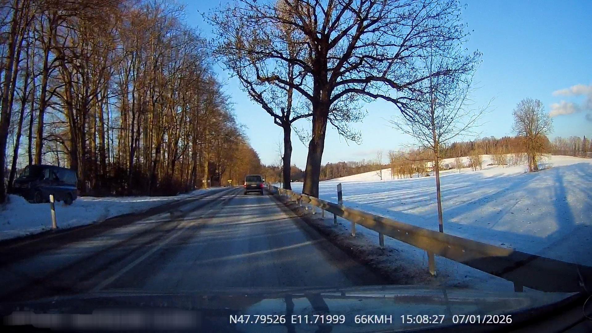 Außerorts wird die Gegenrichtung überwacht: dunkelgrau Bus der VPI Rosenheim mit RO-Kennzeichen