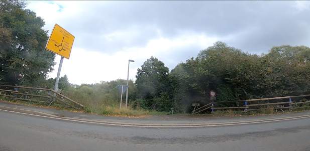 Bundesstraße 485 (Edertalstraße): Fahrtrichtung Lieschensruh bzw. Korbach. Der Messwagen ist einige Meter neben der Bundesstraße auf einem abzweigenden Verbindungsweg abgestellt und bei der Vorbeifahrt kaum erkennbar.