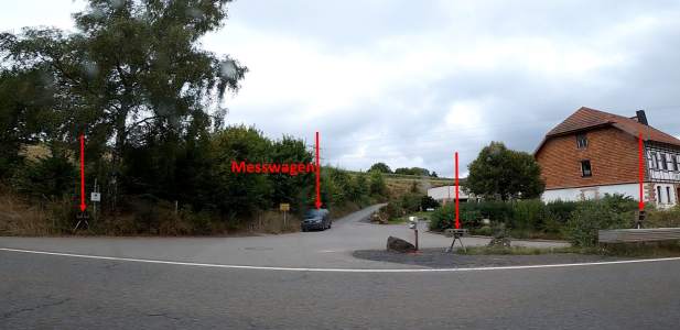 Mobile Messstelle entlang der Bundesstraße 485 zwischen Bad Wildungen und Korbach. Im Detail befindet sich die Messstelle auf Höhe der Zufahrt eines landwirtschaftlichen Betriebes in der Reiherbach bei Selbach. Am Tage der Aufnahmen wurde in beide Fahrtrichtungen gemessen. An der Messstelle gilt eine zulässige Höchstgeschwindigkeit von 70 km/h.